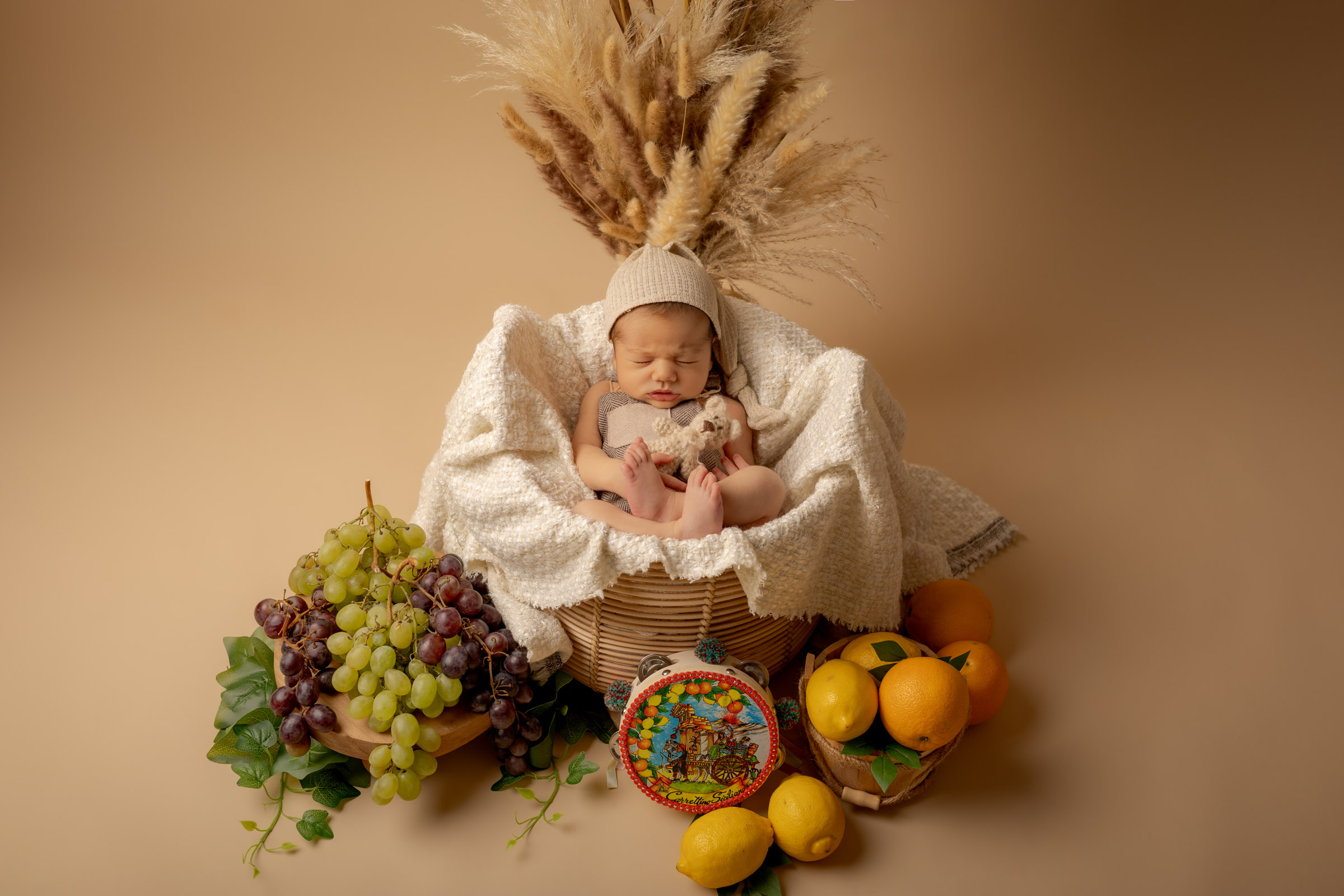Il piccolo andrà vestito con un body bianco ad apertura frontale. Sarò lieta di fornire una vasta scelta di outfit tra cui scegliere, creati esclusivamente per questo genere fotografico, accuratamente lavati e igienizzati.